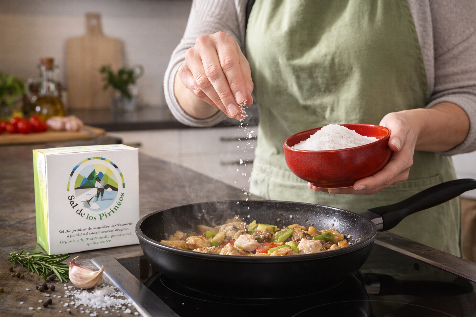 Ontdek de pure kracht van Ecologisch Pyreneeën Zout, afkomstig uit de ambachtelijke zoutmijnen van Salinas de Oro, op 700 meter hoogte aan de voet van natuurpark Sierra de Andia-Urbasa. Dit zout vindt zijn oorsprong in een fossiele zee van meer dan 220 miljoen jaar oud, waardoor het uitzonderlijk rijk is aan mineralen en sporenelementen — vooral calcium.